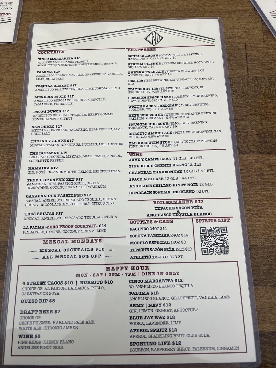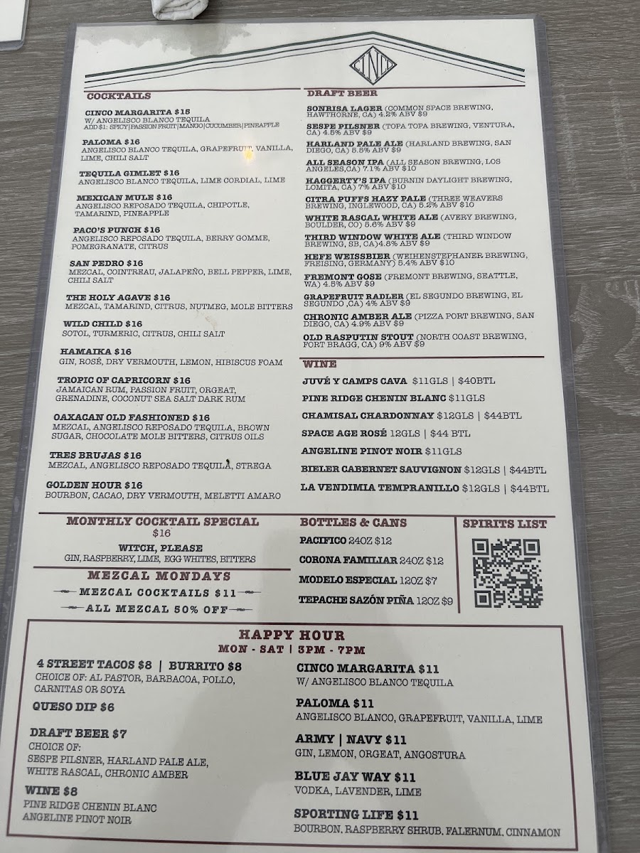 Welcome to Cinco, a vibrant culinary oasis in the heart of Los Angeles at 7241 W Manchester Ave. This stylish restaurant is celebrated for its creative take on Oaxacan specialties, crafted with high-quality ingredients.